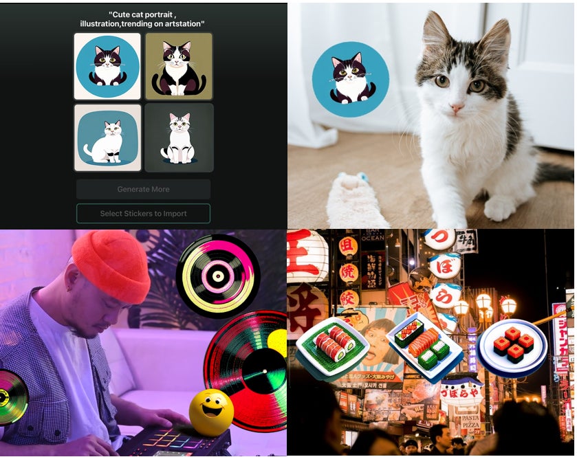 スケッチ、フィルム風、3D、アニメなどのスタイルを選んでステッカーを作成できるAI機能です。