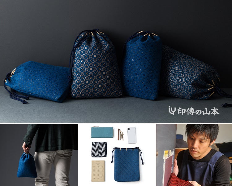 【印傳の山本】合切袋 ”フジマキブルー” 大