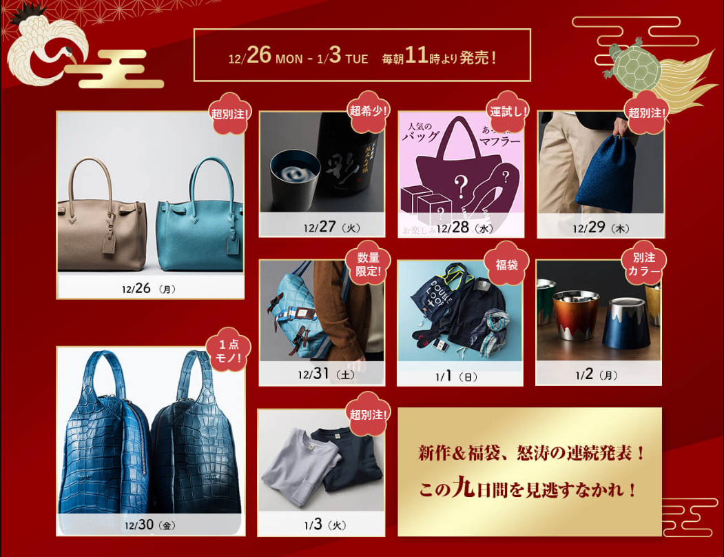 【創業10周年祭のフィナーレ】スペシャルな新商品が毎日登場!藤巻百貨店の「カウントダウン&初売り」1点モノ・超希少・超別注・福袋など盛り沢山な9日間がスタート!