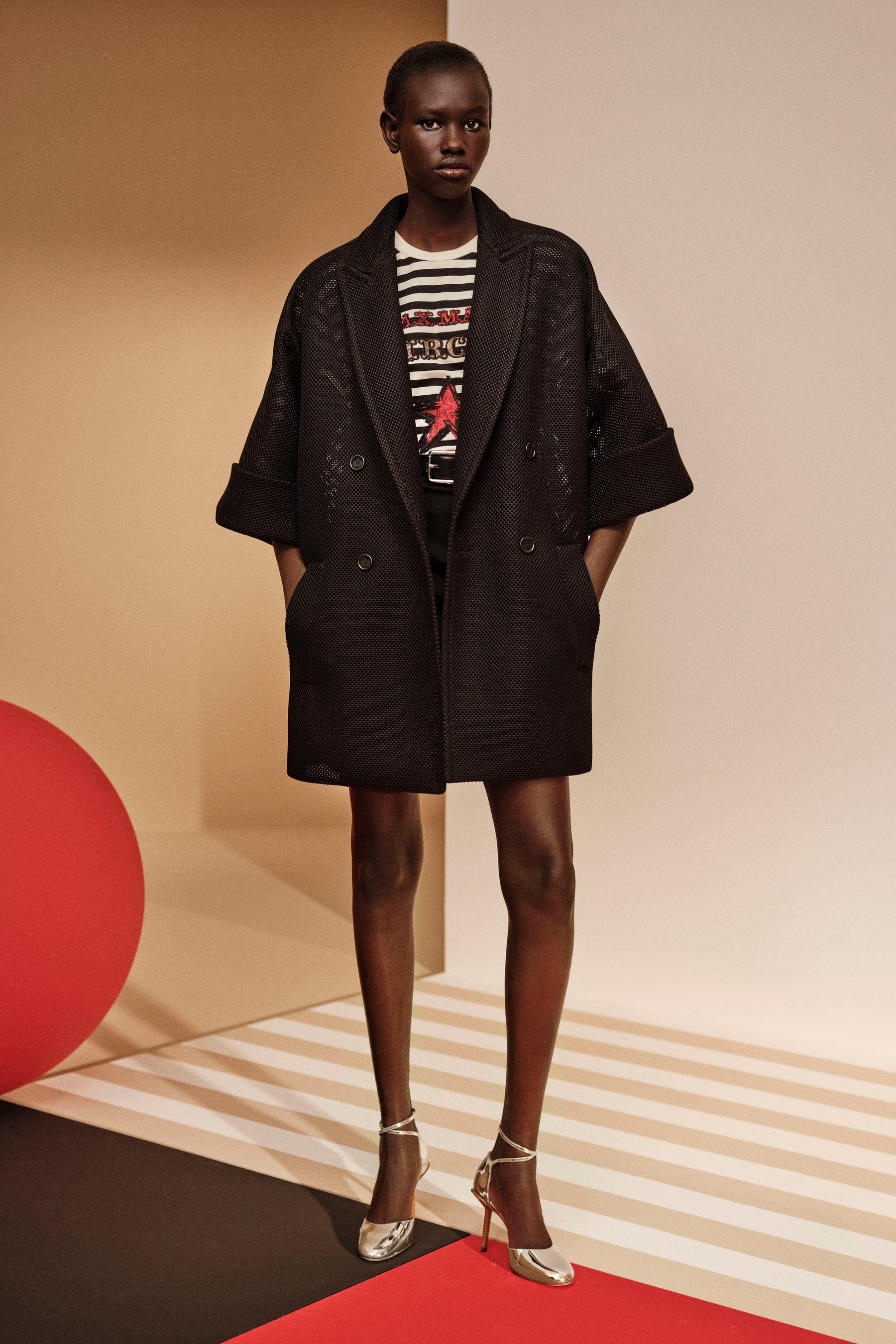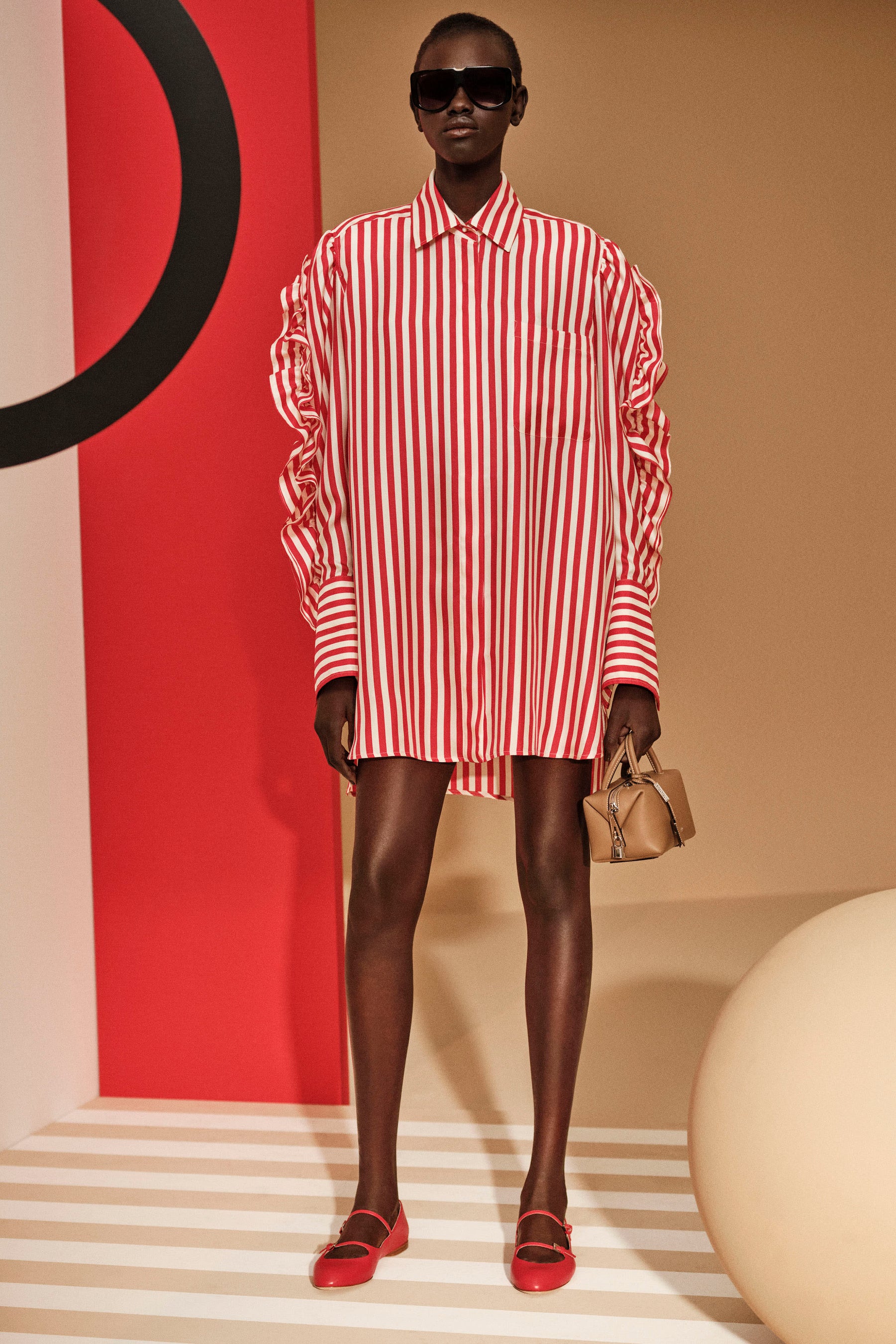 パニエ付きのツイルショートパンツ、マニッシュなブレザーと組み合わせたミニパレオは脚を長く見せ、大胆で華やかなスタイルを演出します。パイ生地のフリルが特徴的なポプリンのシャツドレス、ワンショルダーのアシンメトリーなコンビネゾン、軽やかなスカートと厳格なテーラードコートドレス、トラペーズラインのオーガンザトレンチコート、ビブフロントのマイクロコンビネゾンなど、どれも今シーズンのメリージェーンシューズと合わせたいものばかりです。
