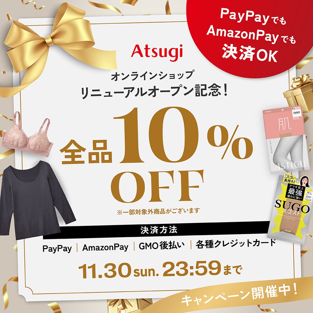 アツギオンラインショップのリニューアルオープンを記念して、10%OFFクーポンをプレゼントいたします。