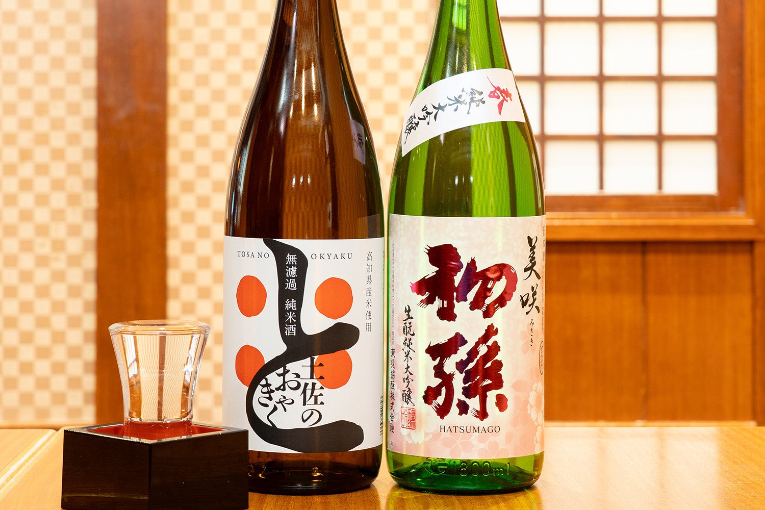 この時期の味覚に合うオススメの酒として、山形県・東北銘醸「初孫 美咲 生酛純米大吟醸」(一合950円)と、高知県・土佐鶴酒造「土佐鶴 無濾過純米酒 土佐のおきゃく」(一合800円)の2種を、3月に引き続き提供します。