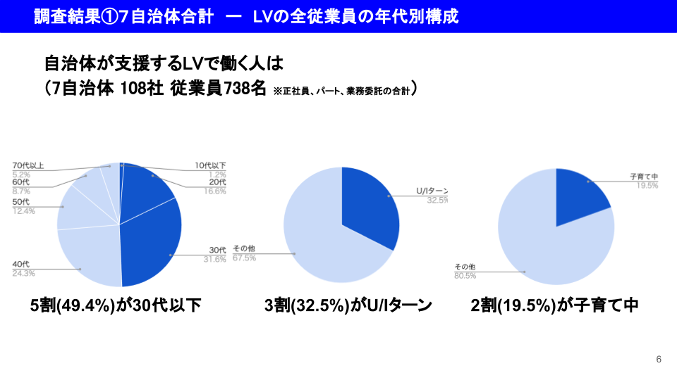 このたび、参画する7つの自治体による、ローカルベンチャーで働く人の年齢構成についてアンケート調査を実施し、レポートを作成しました。