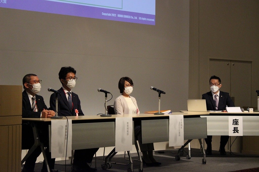 基調講演はシンポジウムの形をとり、小児科領域の薬物治療に関する高い専門性を持った薬剤師を育成するための課題について、日本薬剤師研修センターが認定する小児薬物療法認定薬剤師の資格を持った社員の経験談を交えながらディスカッションを行いました。