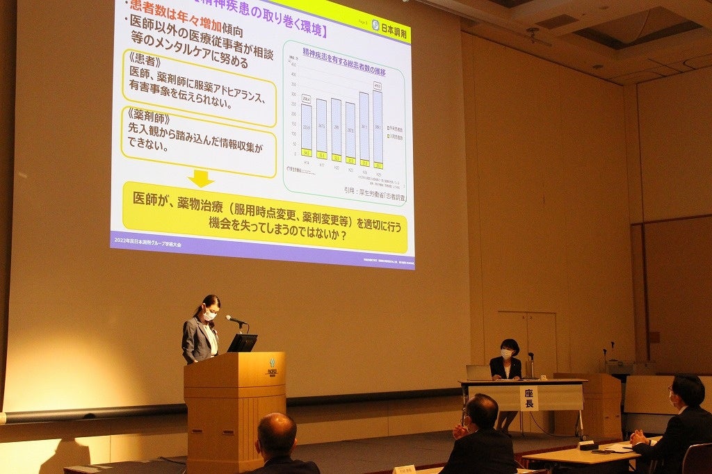 今年度の大会テーマは、「『頼られる価値を創り出す』~エポックメイキングへの挑戦~」です。一般講演では、全国8ブロックでの予選会から選出された全23演題を「高度薬学・がん関連セッション」「薬局業務・地域連携セッション」の2会場に分け、口頭発表と質疑を行いました。登壇者の中には新卒2年目の社員も含まれ、若手・ベテラン問わずグループ全体でノウハウの共有と専門性の向上をはかりました。