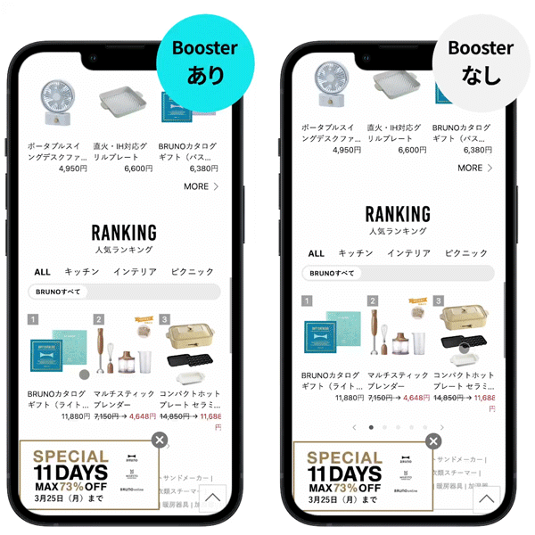BRUNO様事例の詳細および「Repro Booster」導入時/非導入のサイトの比較動画は以下のURLよりご覧いただけます。