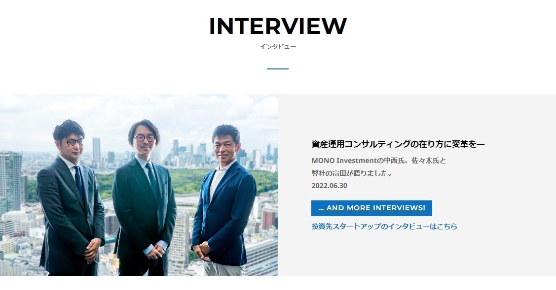 今後も出資先スタートアップさまへのインタビューを実施し、スタートアップの「人の魅力」や「想い」、「提携に至った背景」などを発信してまいります。