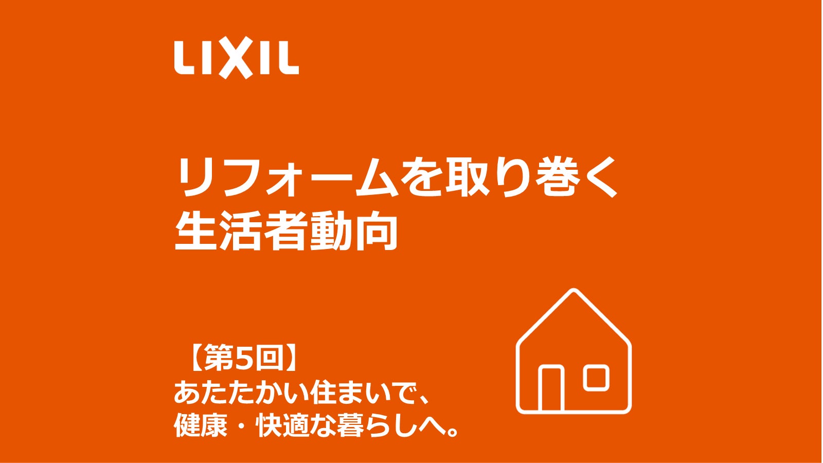 株式会社LIXIL(以下 LIXIL)は、「リフォームを取り巻く生活者動向」をまとめ、シリーズ(全5回)で順次公表いたします。第5回は『あたたかい住まいで、健康・快適な暮らしへ。』です。