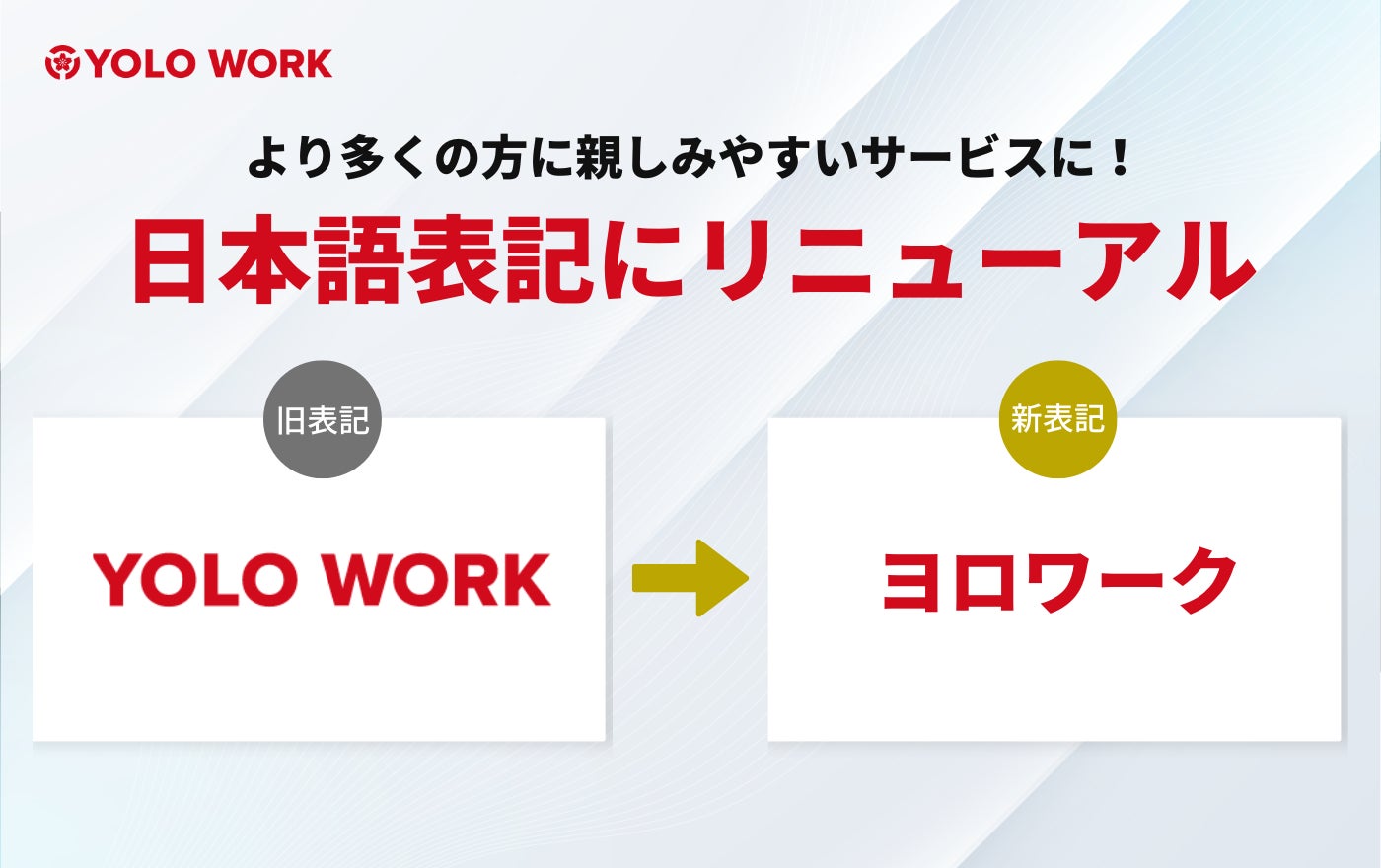 今回、英単語を日本語表記「ヨロワーク」に変更する事は、YOLO JAPANが掲げるビジョンの「日本人と外国人が共存する日本作りに貢献する」をさらに体現する一環として意識しています。今回の日本語表記への変更により、正確な名称「ヨロワーク」で より多くの方にサイト名に親しみを持っていただきたいと考えています。