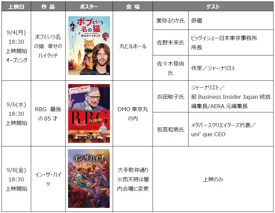 ~4年目となる今年度は、新会場「大手町仲通り」での屋外上映を実施~