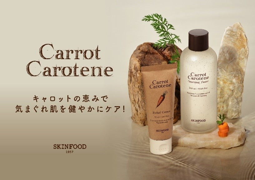 株式会社IKホールディングス(本社:愛知県名古屋市 代表取締役:長野庄吾)の100%子会社、株式会社フードコスメ(所在地:東京都中央区 代表取締役:飯田悠起)は、素肌が喜ぶ食べ物から生まれたトータルコスメブランド『SKINFOOD』より、動物成分を一切使用していないヴィーガン認証取得済み(※1)化粧水「キャロットカロテン スージングトナー」を直営店及び公式オンラインショップ等で数量限定発売いたします。また、同ラインの人気商品「キャロットカロテン リリーフクリーム」をガラス製ジャータイプから紙製のチューブ容器に変更し、同日リニューアル発売いたします。