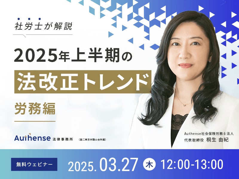 【無料ウェビナー開催2025.3.27】社労士が解説!2025年上半期の法改正トレンド~労務編~|Authense法律事務所