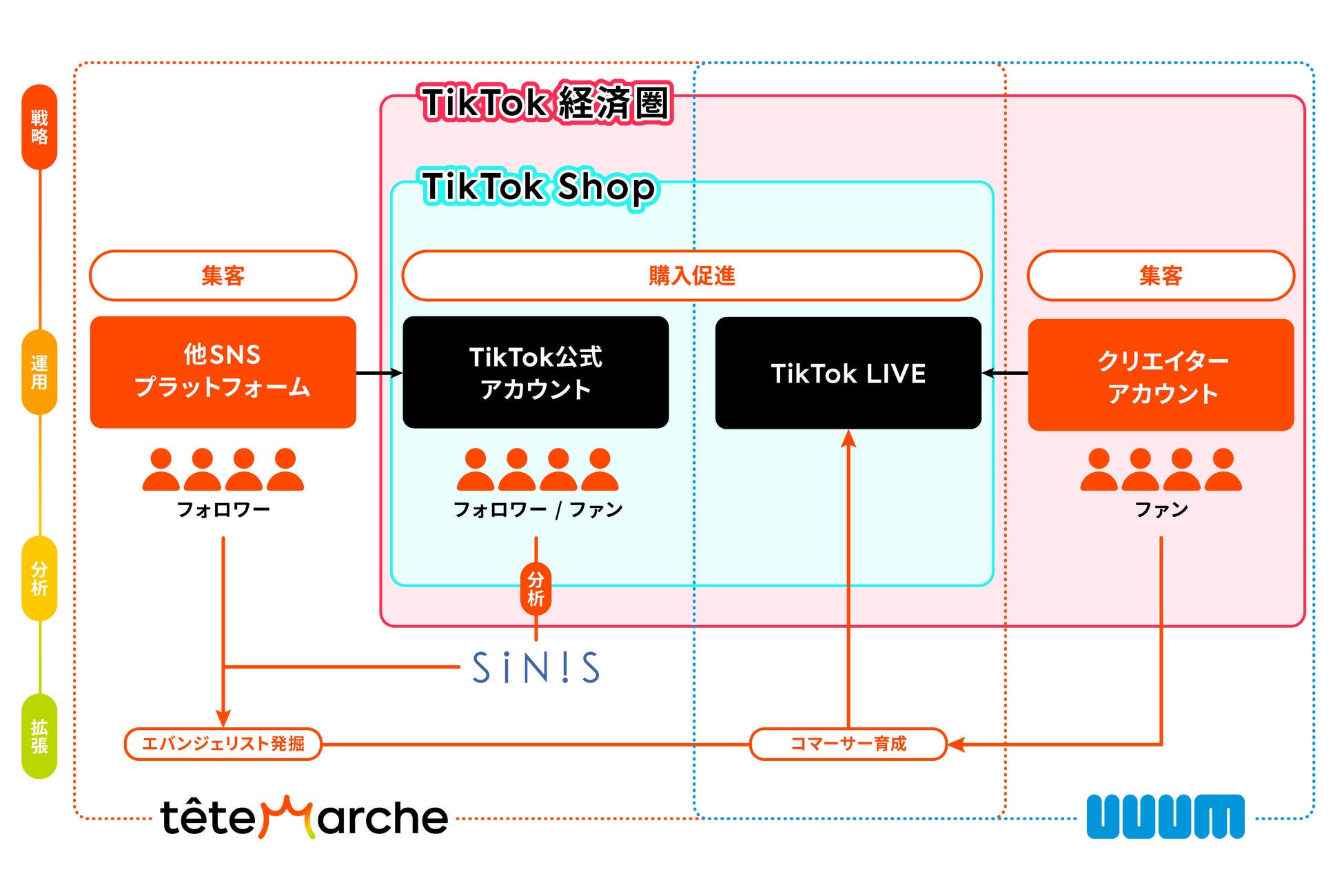 テテマーチ株式会社(本社東京都目黒区、代表取締役:上田 大介、以下「テテマーチ」)とUUUM株式会社(本社: 東京都港区、代表取締役社長: 梅景 匡之、以下「UUUM」)は、TikTokのECプラットフォーム「TikTok Shop」に出店する企業・ブランド(以下、セラー)向けに、統合的なアカウント運用および販促支援ソリューション「TikTok Shop コマース総合支援サービス」の提供を開始します。