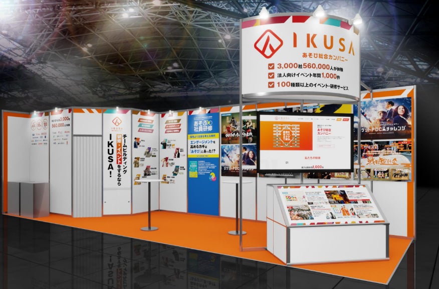 ブースでは、エンゲージメントを高める没入型研修「あそぶ社員研修」、「チャンバラ合戦®」「戦国運動会」「チームビルディングBBQ」などの社内レクリエーション・イベントを、動画やパネルで展示します。また、イベントの開催事例や全サービスが掲載されている総合カタログも無料でお渡しいたします。
