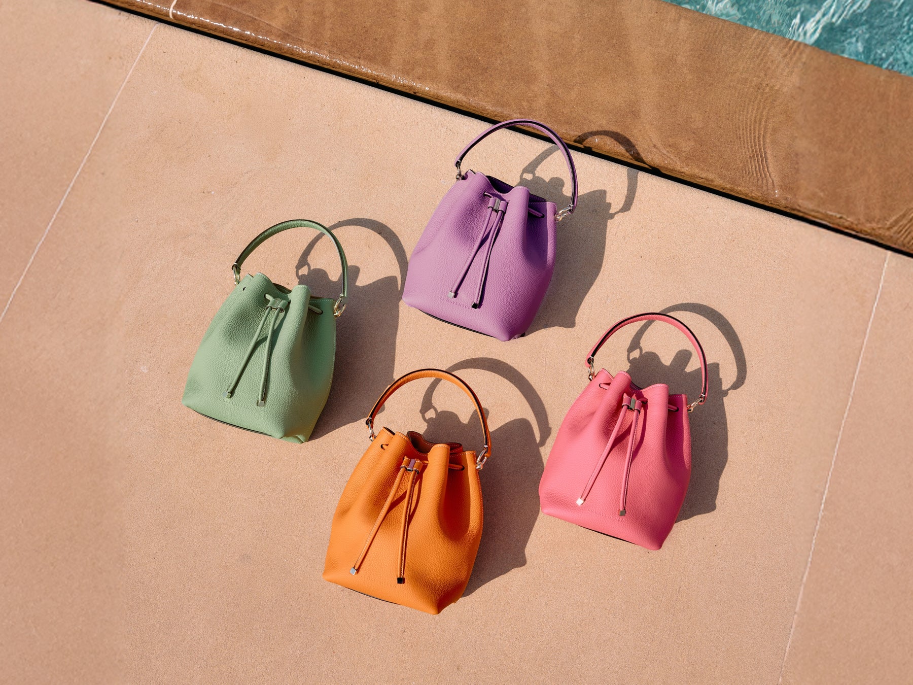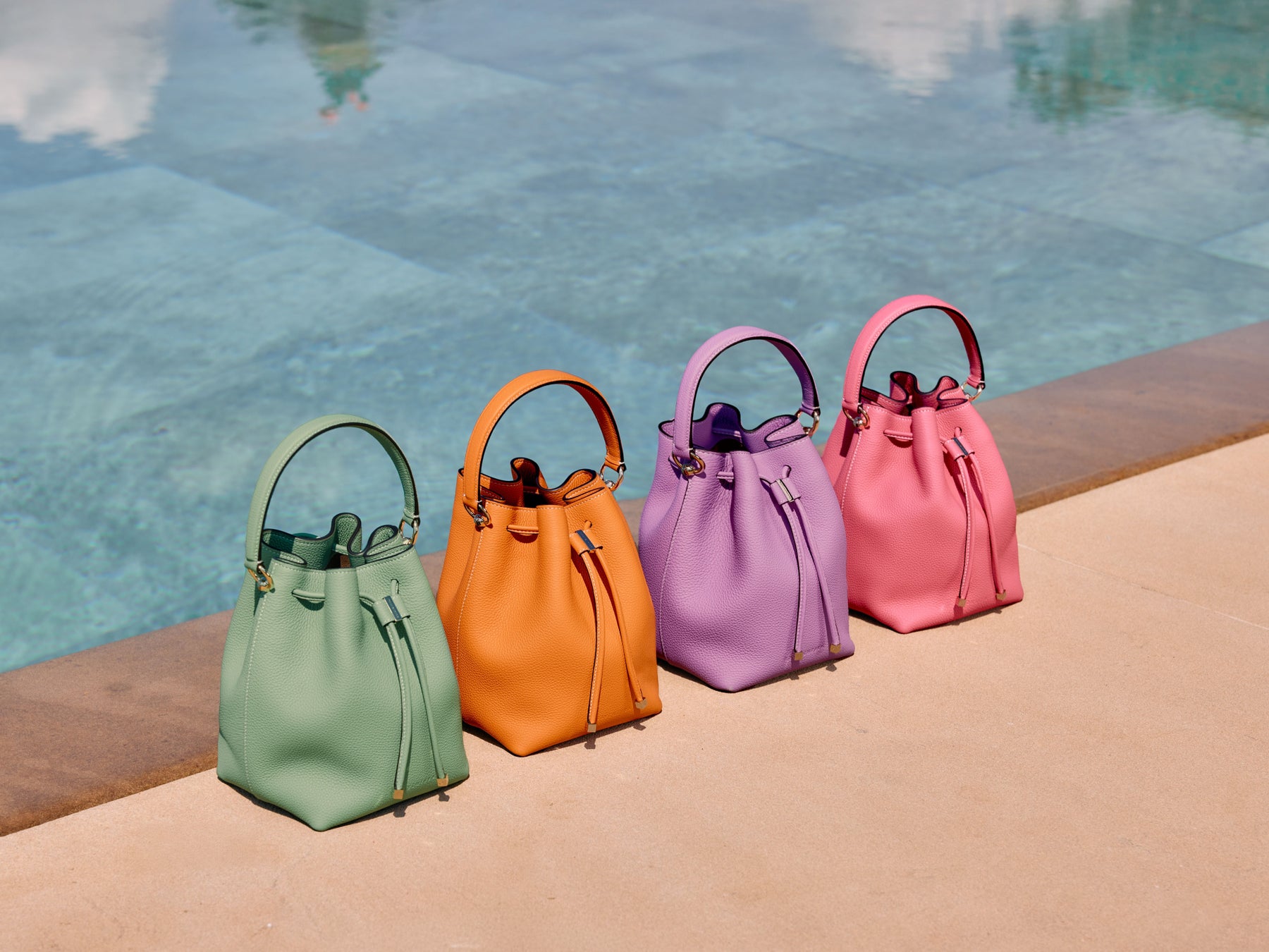 装いに自然な華やぎを添えてくれる、上質なシュリンクレザーのやわらかなフォルムが人気の巾着型レザーバッグに、夏の気分を高めてくれる鮮やかな新色カラーが登場。