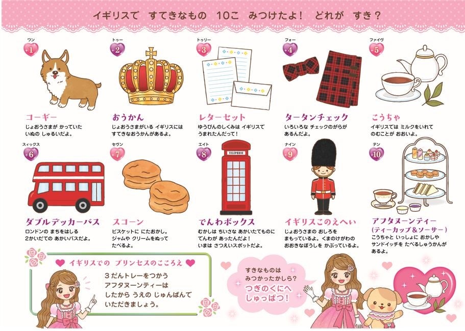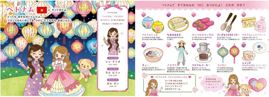 本書は、コロナ禍によって生活スタイルが変わり、旅行に行くことが難しくなっている子ども達にむけ、世界の国々とそこにあるステキなものを、かわいい絵で紹介する絵本です。 主役は子どもたちが大好きなプリンセス。子どもたちはまだ知らない世界の国を知ることで、海外への興味や好奇心を育むことができます。さまざまな価値観を知ることで、自分の周りには広い世界が広がっていることを伝えられる絵本です。