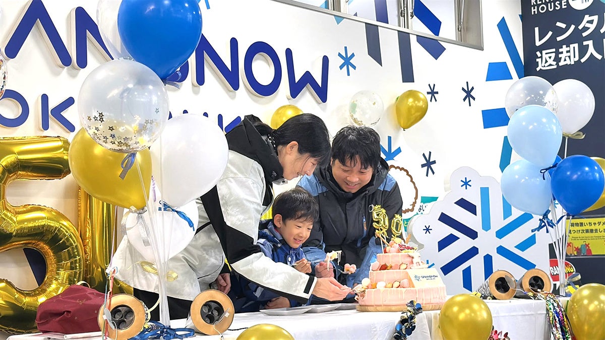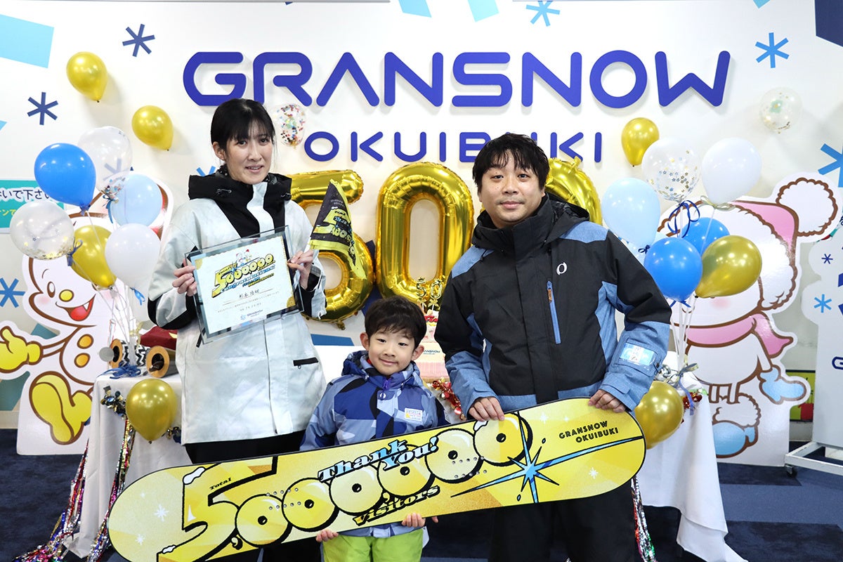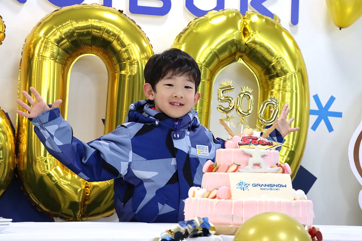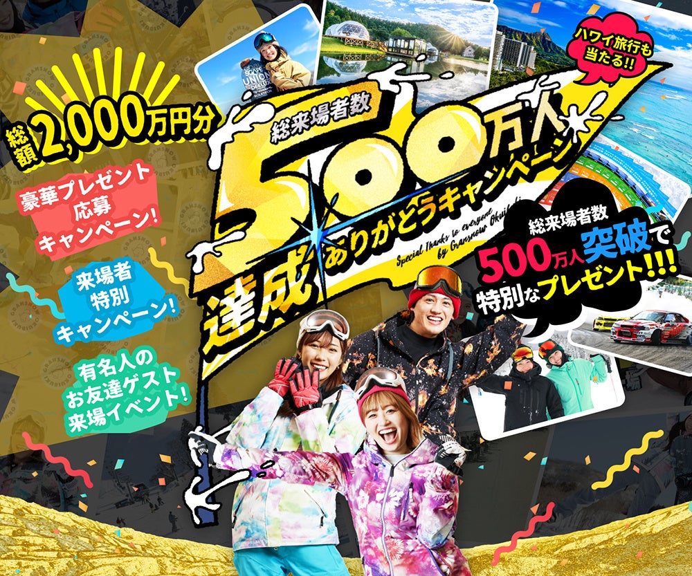 【500万人目の来場者になったのは大阪府大阪市在中の「杉本陸翔」君(7歳)「スキー場のシーズン券&グランピング施設の無料宿泊券」他「総額100万円分の豪華プレゼント!」を贈呈】