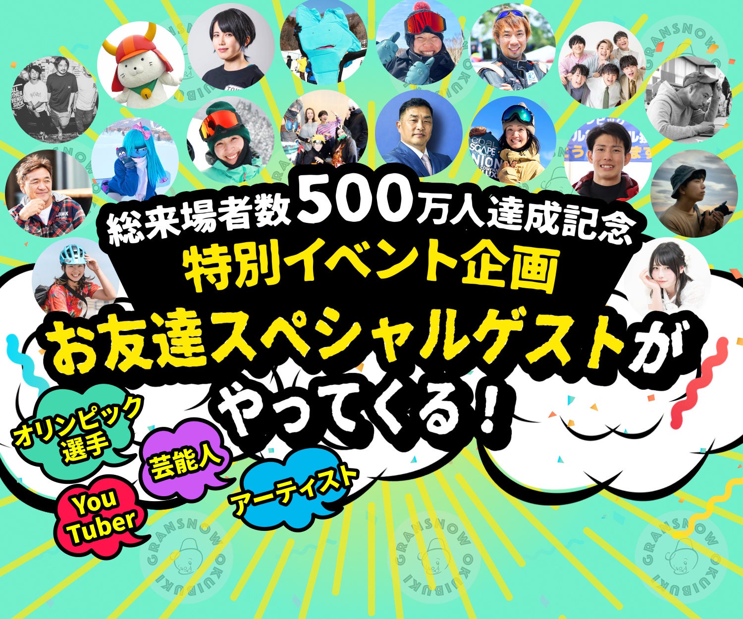 【総来場者数500万人達成後からスタート!!グランスノー奥伊吹に来てくれた500万人の中から超豪華お友達スペシャルゲスト「総勢39名」がやってくる!特別企画を「1月〜3月」まで3ヵ月間実施】