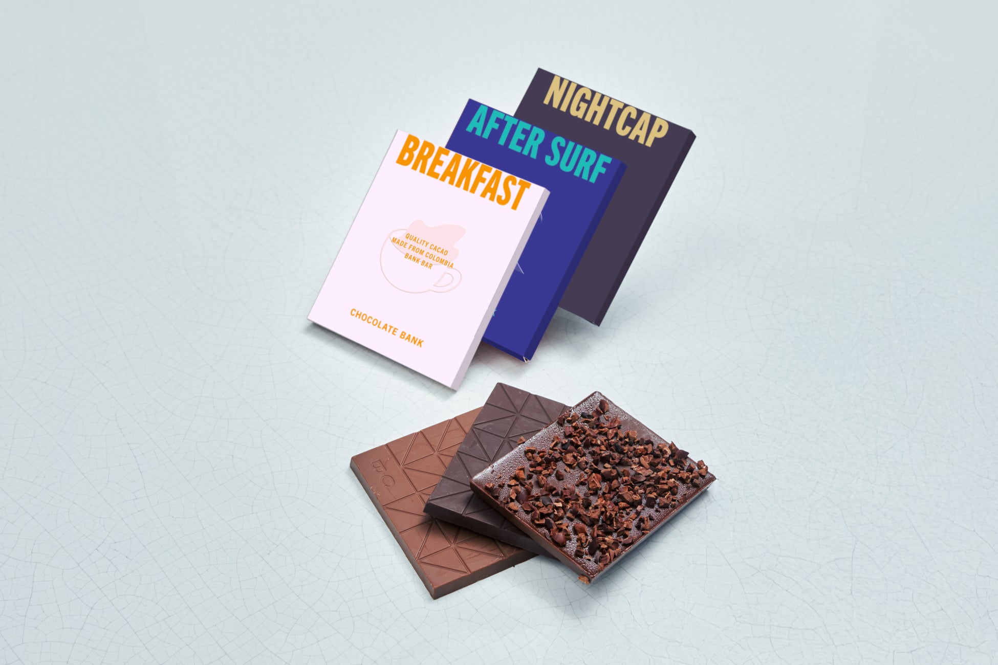 板チョコの概念を超える鮮度で、カカオの美味しさをそのまま表現しました。フレッシュなカカオ感、丁寧な発酵と焙煎による奥深さなど、栽培から取り組みチョコレートの美味しさを凝縮。新作はBREAKFAST(コーヒーニブ)、AFTERSURF(塩キャラメル)、NIGHTCAP(ラム)の3種です。