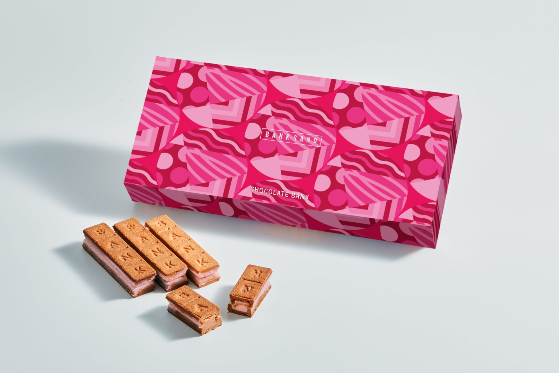 カカオを収穫後、丁寧に発酵させ抽出した希少なカカオバターを主役にしたサンドクッキー。食感の良いタルトのクッキーの中に、コロンビア産のカカオバターで作り上げた口溶けなめらかなキャラメルと、ホワイトチョコレート、バタークリームをサンドしました。新作は福岡県糸島の濃厚なあまおう苺を合わせた、贅沢な味わい。