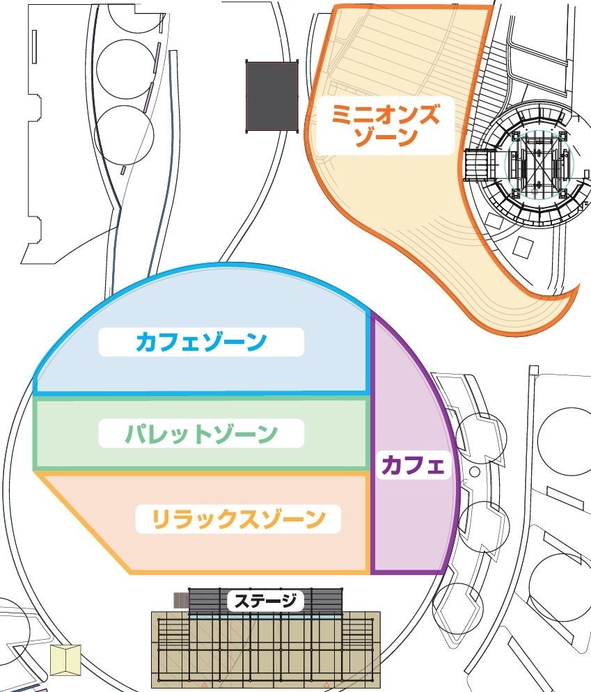●どこに座るのも自由。好みのスタイルで観覧 「パレットゾーン」