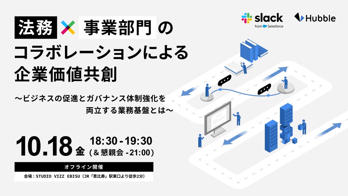 【Slackとのコラボイベント!】Hubble、「法務×事業部門のコラボレーションによる企業価値競争〜ビジネスの促進とガバナンス体制強化を両立する業務基盤とは〜」をオフライン開催!