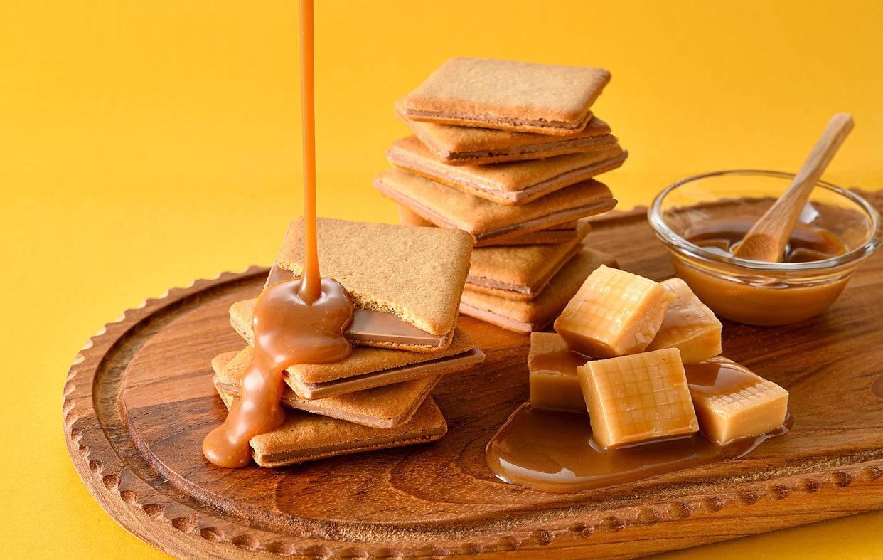 コクのあるミルクの風味と優しい甘さのチョコをサクッとした軽い食感のキャラメルビスケットでサンドしました。口の中でとろけるミルクチョコにキャラメルの風味が寄り添い、ぜいたくな味わいが広がります。