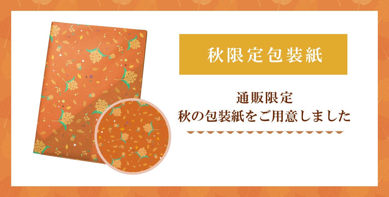 秋の贈り物にぴったりなスイーツやギフトを多数ご用意しております。オンライン限定で、季節感あふれる秋の包装紙もご用意しております。
