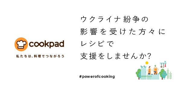 クックパッド株式会社は、ウクライナにおける紛争の影響を受けた方々を支援することを目的に、調理環境が十分でない中でも作ることができる料理のレシピ募集プロジェクト「#powerofcooking」を開始します。寄せられたレシピの一部はウクライナ語に翻訳し、ウクライナ版クックパッドを利用するユーザーに提供します。