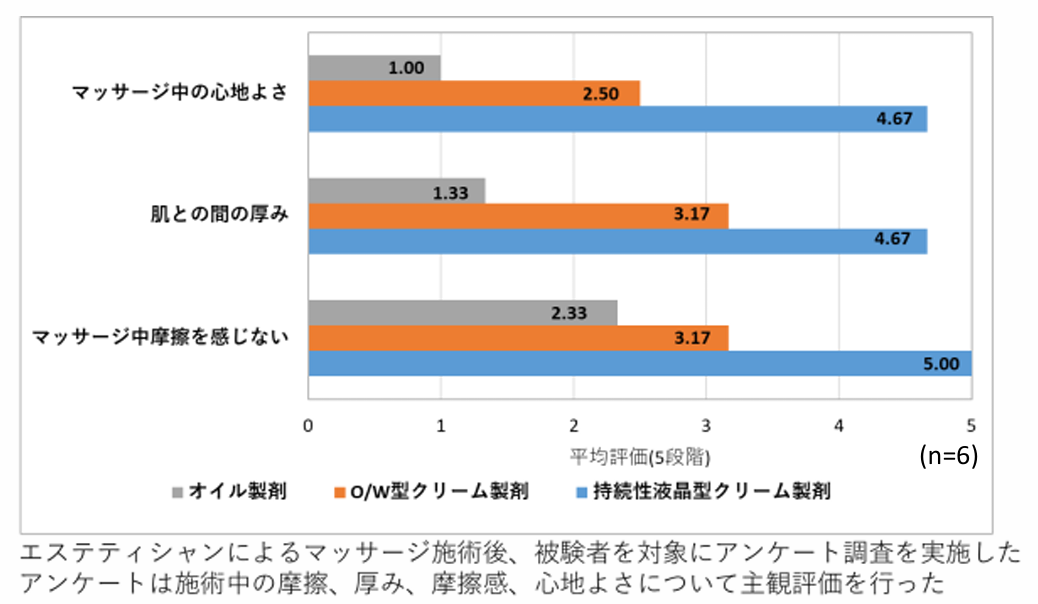 マッサージ中の使用感評価においても、摩擦の少なさや厚みによる心地よさが支持され、機能性と感性価値の両立が確認されました。