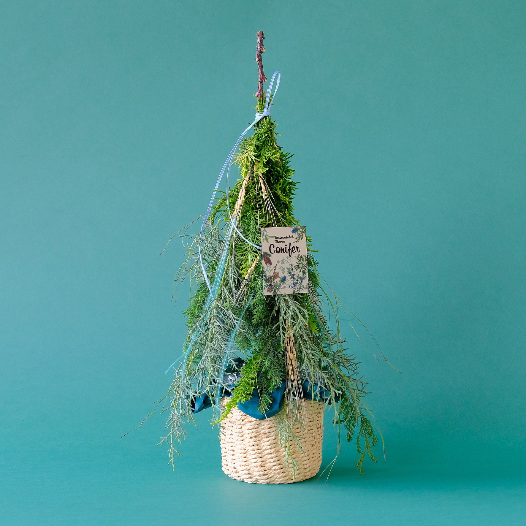 コニファーはお手入れも簡単で非常に長持ちします。水にいけて観葉植物のように楽しむこともできますし、ドライにしてツリーやスワッグにすることで季節のインテリアにも。クリスマスを待つ時間を楽しむちょっとしたギフトやご自宅での快適な暮らしにぜひお選びいただけると嬉しいです。