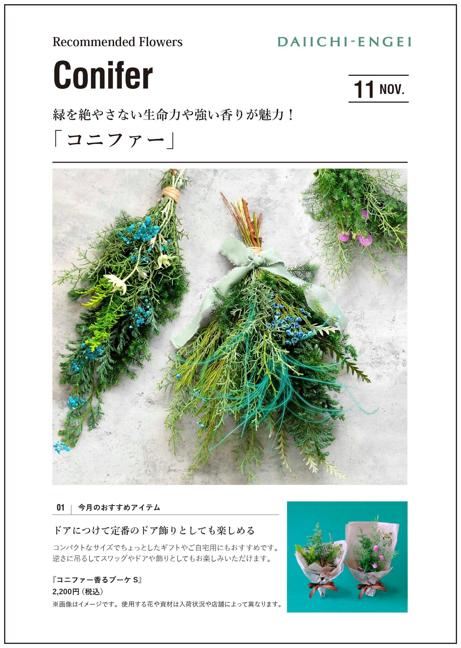 変化する色や香りとともにクリスマスを待つ時間も楽しむ「コニファー」冬のインテリアにもおすすめのアイテムを展開