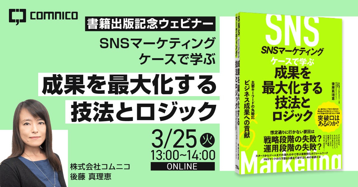 コムニコ、「SNSマーケティング ケースで学ぶ 成果を最大化する技法とロジック」書籍出版記念オンラインセミナーを3月25日(火)13時から開催