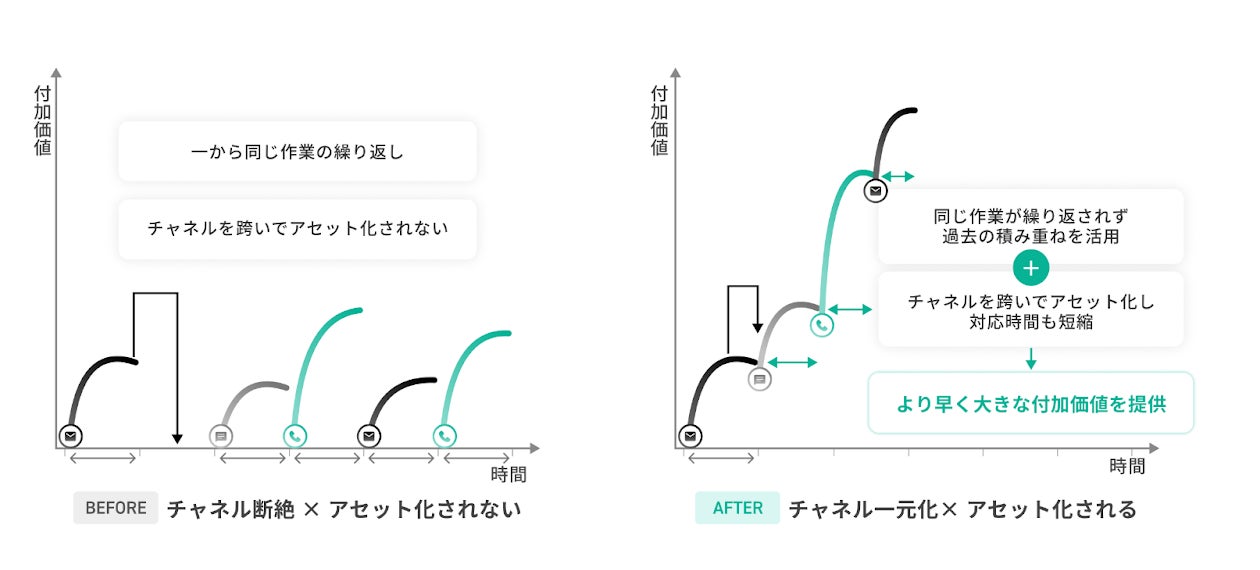 日々発生するコミュニケーションを過去の資産として蓄積し、その活用をAIに任せることで、人々はより創造的で付加価値の高い業務に集中できます。これにより、リソースを戦略的な業務に振り向けられるようになり、ビジネスの成長を加速させます。