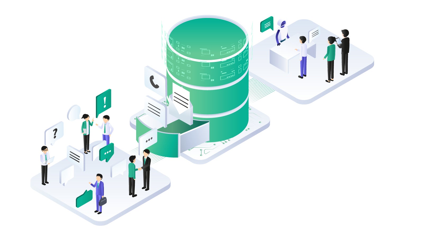 これまでバラバラに管理されていたメールやチャット、社内メモなどをAIが学習し、企業の共通資産として一元管理します。これにより、担当者しか知らない情報(属人化)を防ぎ、組織全体の対応力を底上げします。