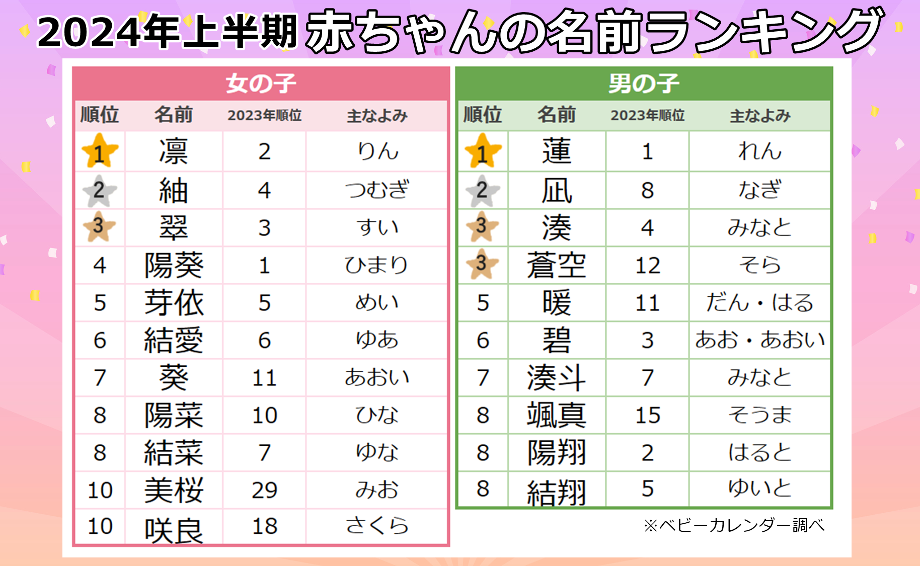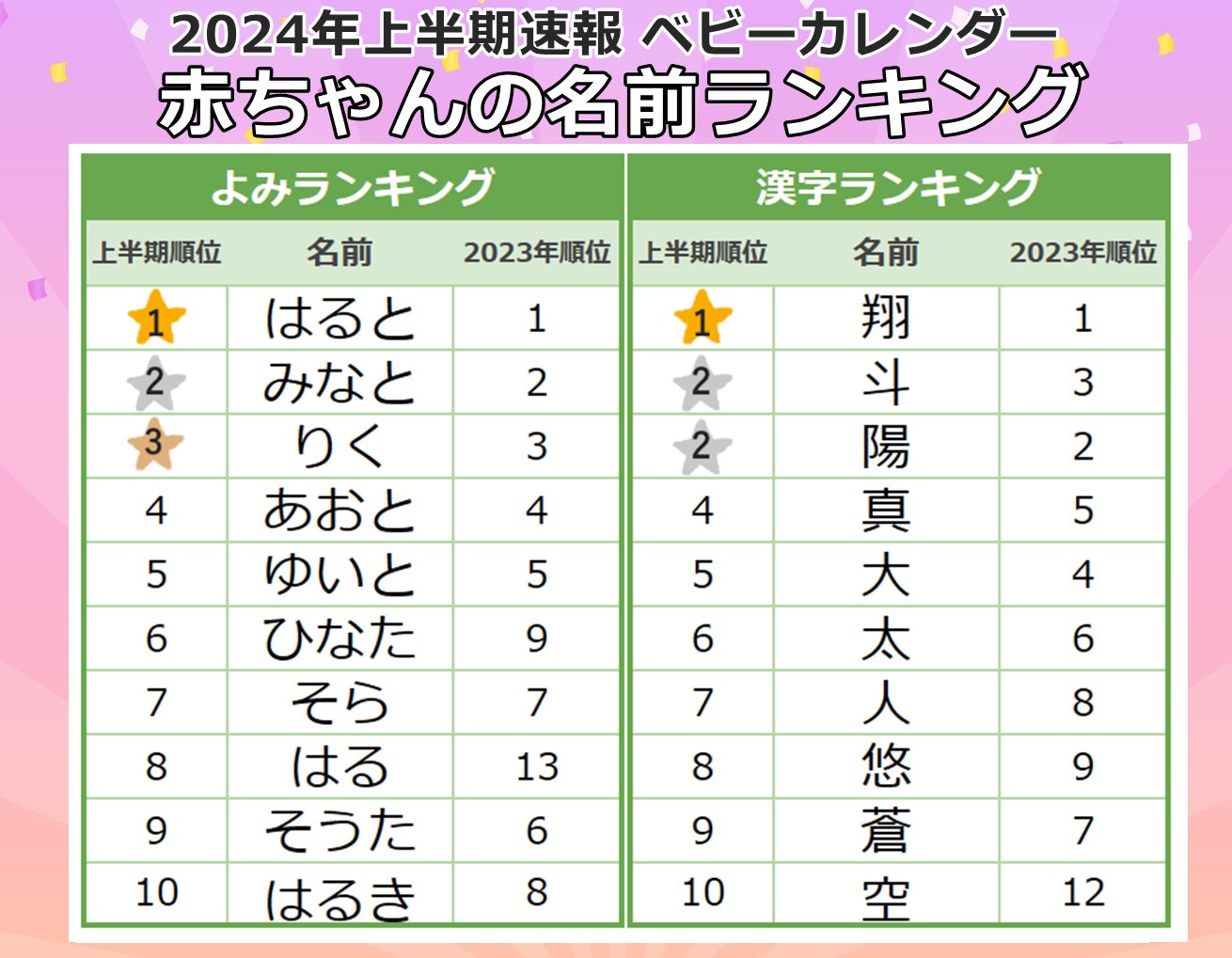 【2024年上半期速報】3.6万人を大調査、名前ランキング発表!女子は「レトロネーム」「フラワーネーム」が人気!男子はバレーボール日本代表・髙橋藍選手と同名が急増!