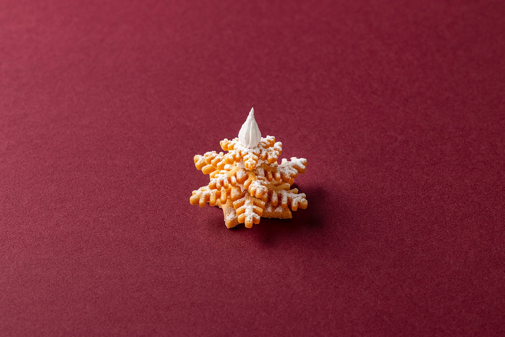 雪の結晶を模ったジンジャーブレッドを積み重ねてクリスマスツリーに見立てた、繊細な佇まいが美しいクッキー。ジンジャーの風味を効かせ、見た目でも心躍るホリデーシーズンをご堪能いただける一品に。