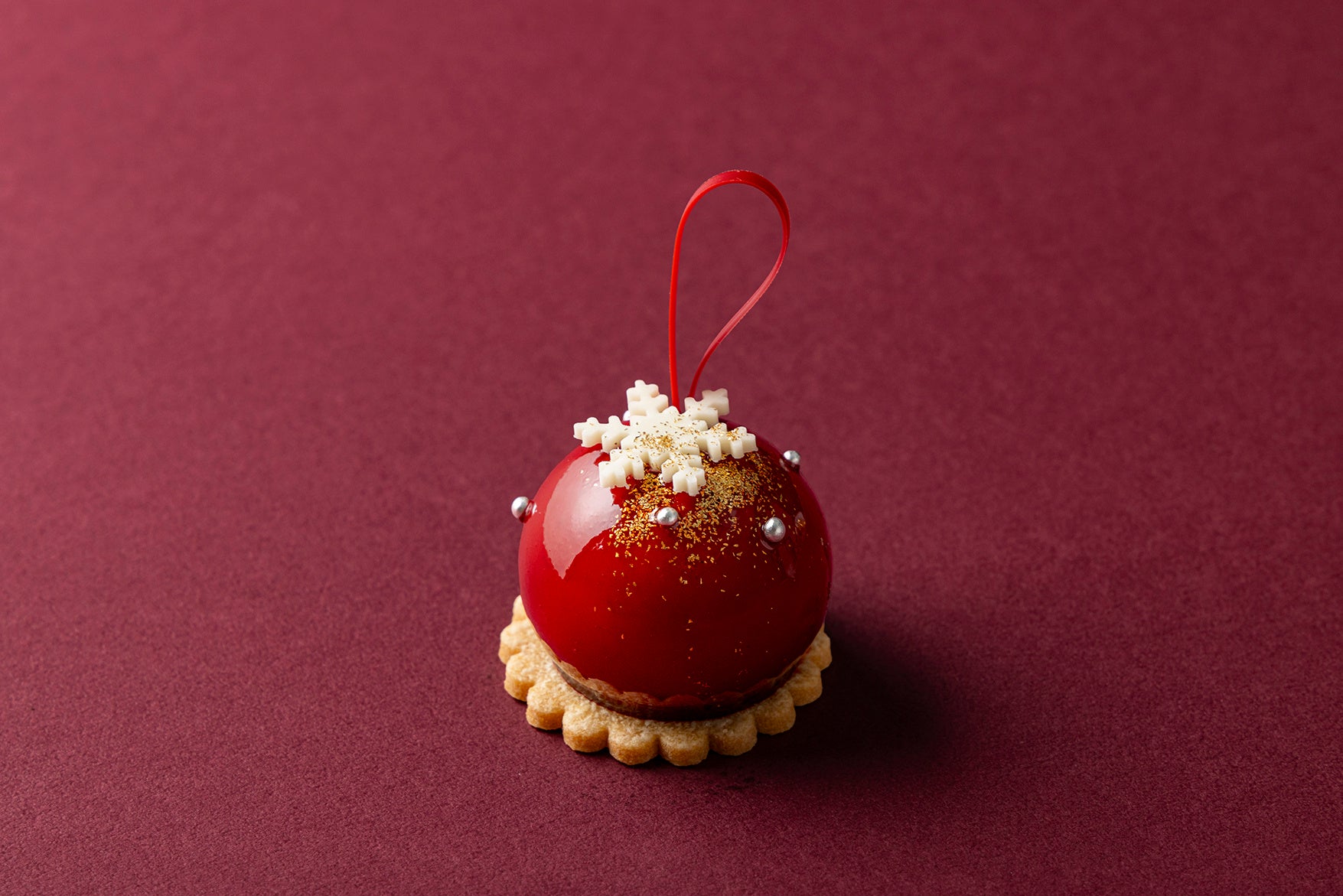 クリスマスオーナメントをモチーフにした、アールグレイ香るムース。紅茶と相性の良いりんごをシナモンで煮詰めたコンポートを入れ、フェスティブシーズンにふさわしい味わいに仕上げました。