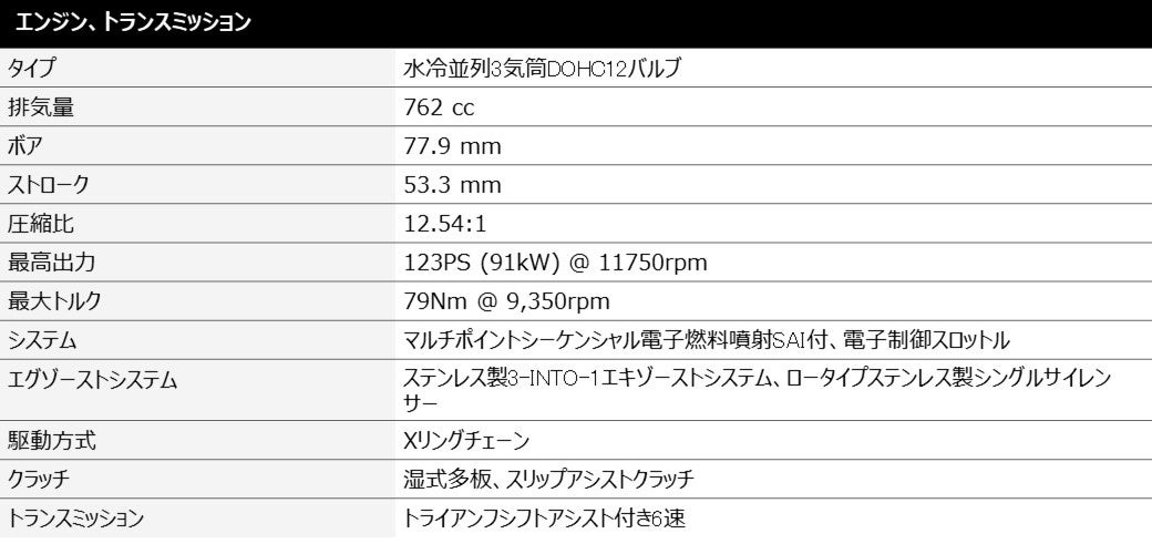 ・2019年シーズンの開幕以降、FIM Moto2™世界選手権への独占的エンジンサプライヤーとして、トライアンフのレーシング伝説は今なお続いています。トライアンフ モーターサイクルズは出場全チームにレース専用チューンを施した765cc 3気筒エンジンを供給しており、このエンジンはクラスをリードするStreet Triple RSエンジンをベースにしています。初年度にはこのクラスを再定義しながら、Moto2™ マシン初の300kmhオーバーの最高速度達成を含め、次々と記録を塗り替え、2020年シーズンは記録更新がさらに高速化され、15回のレースから、前代未聞の11個のラップレコードと7人の異なる優勝者が生まれました。