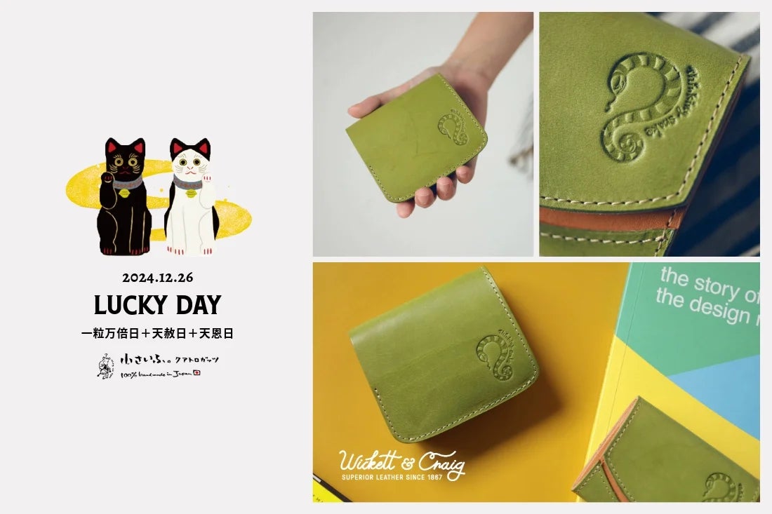 Wickett & Craig ハーネスレザーの開運日限定カラーとして、来年のラッキーカラーであるグリーンの干支財布も発売しています。