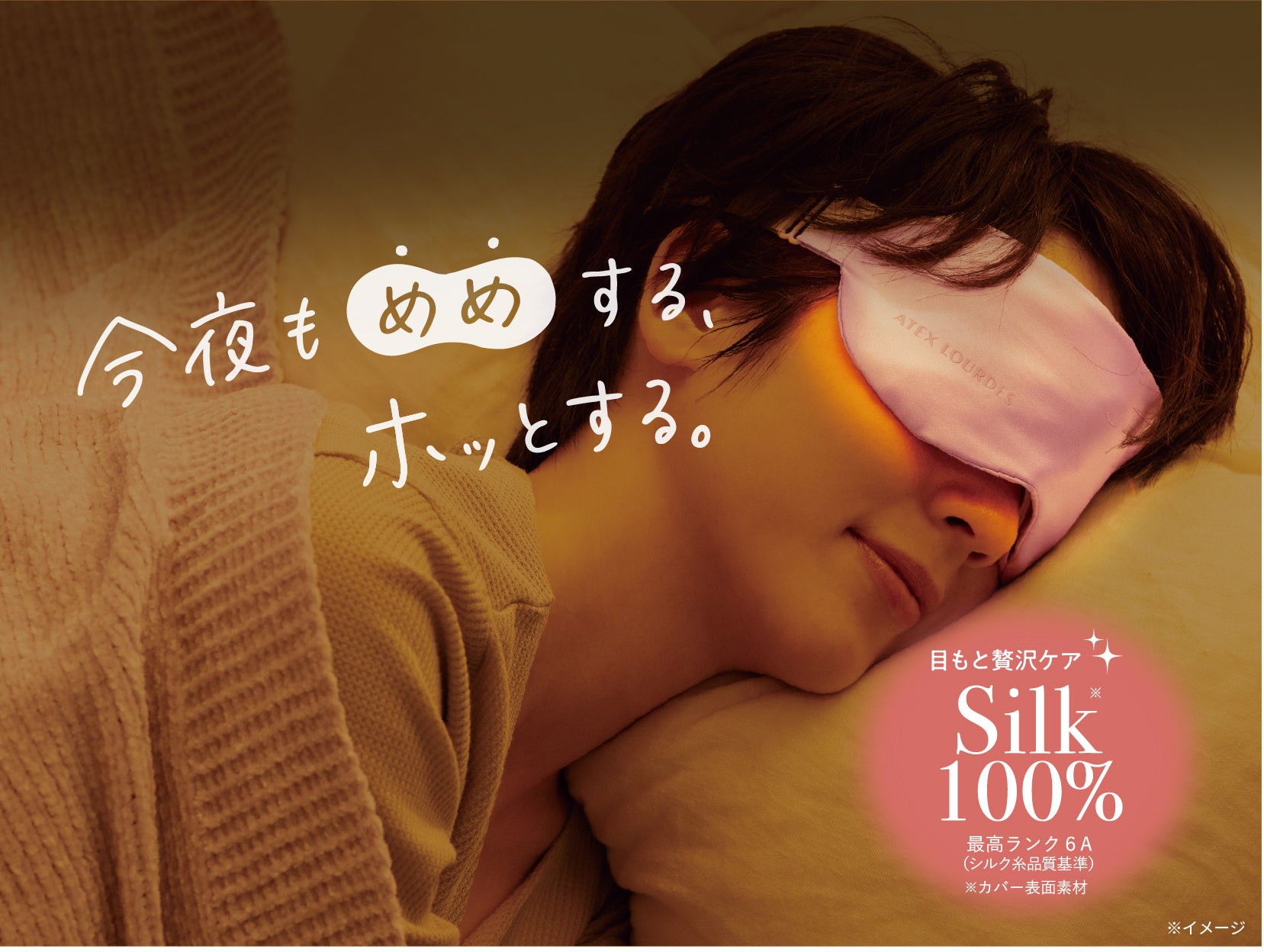 寝る前のくつろぎタイムに。シルク素材のコードレス温熱アイマスク「めめホット」発売