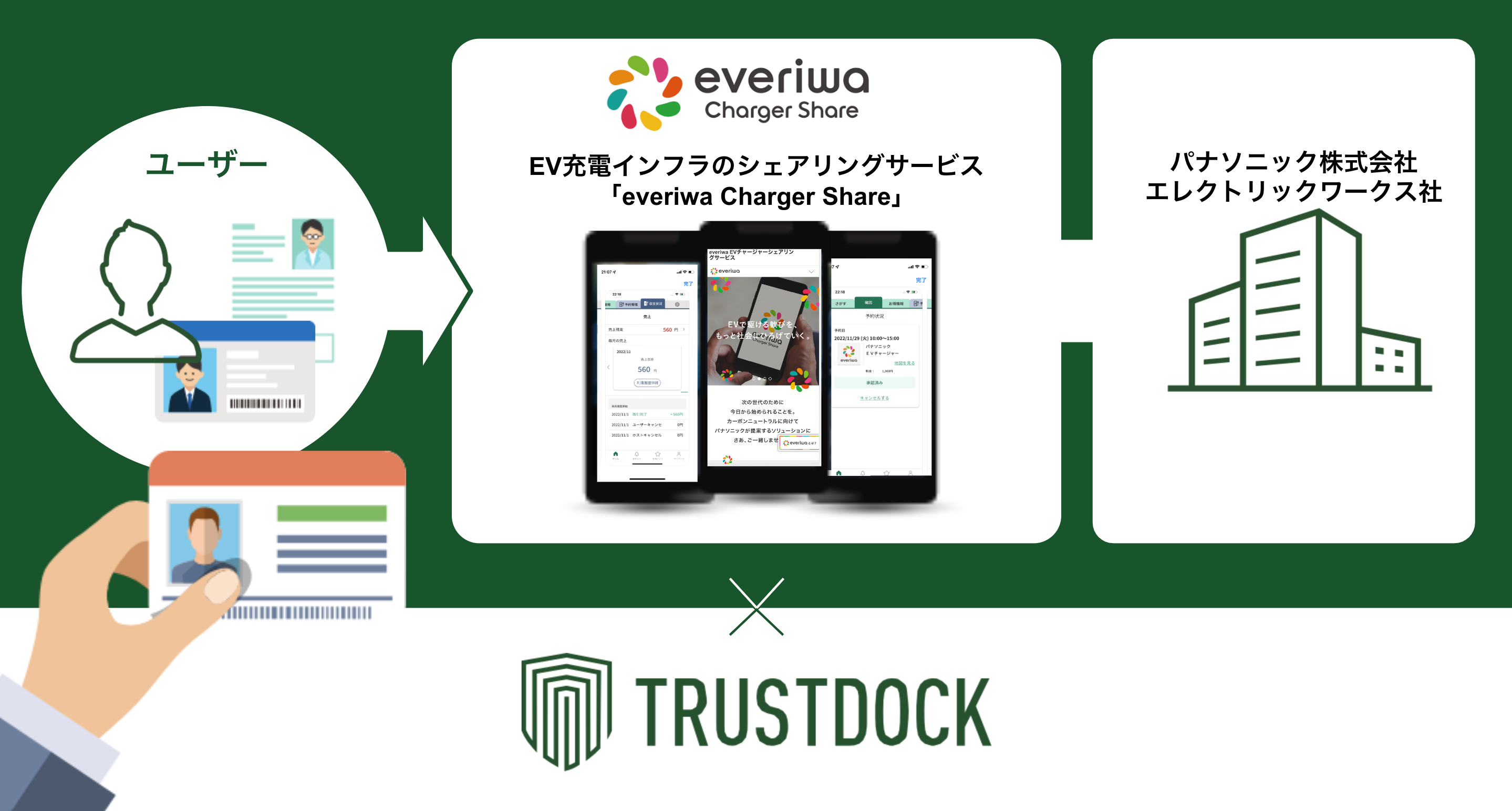 株式会社TRUSTDOCK(本社:東京都千代田区、代表取締役:千葉 孝浩、以下 TRUSTDOCK)は、パナソニック株式会社 エレクトリックワークス社(本社:東京都港区、代表:大瀧 清、以下 パナソニック)が運営・提供する「everiwa Charger Share」に、eKYC本人確認サービス「TRUSTDOCK」を導入したことをご報告します。
