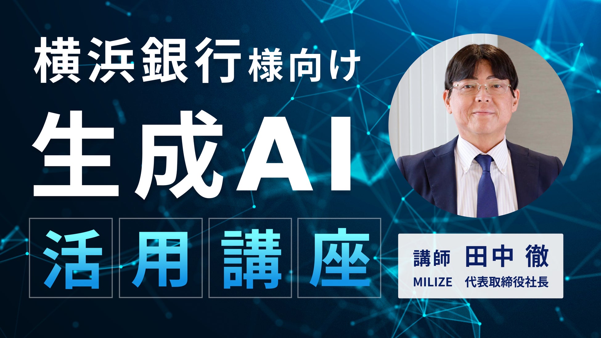株式会社MILIZE(本社:東京都港区、代表取締役社長:田中 徹、以下「MILIZE」)は、2025年2月17日に横浜銀行のリテール担当者向けに「生成AI活用講座」を実施しました。本講座では、MILIZE代表の田中が講師を務め、金融業界における生成AIの最新トレンドと具体的な活用方法について解説しました。