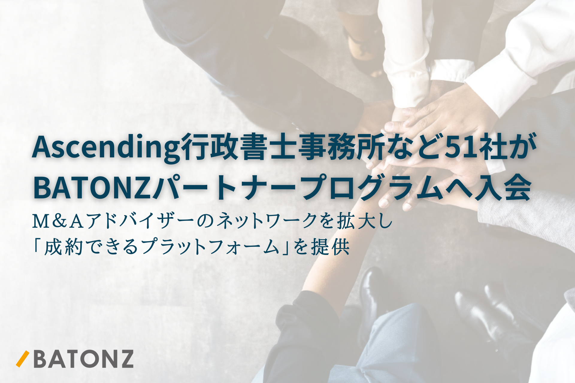 Ascending行政書士事務所など51社がBATONZ パートナープログラムへ入会