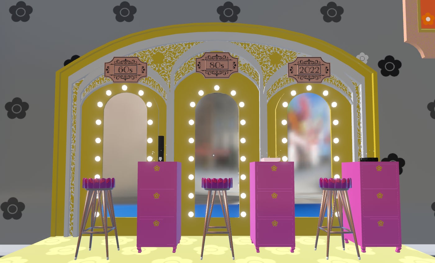 (年代別トレンドメイクを体験できるドレッサーコーナー)