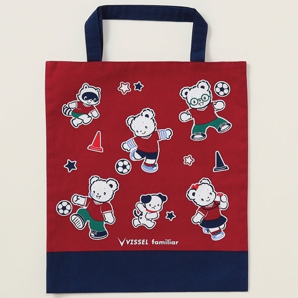 今シーズンのコラボレーショングッズは、縦型トートバッグと巾着の2種類となり、世代を問わず愛されるファミリアのオリジナルキャラクター、ファミちゃんやリアちゃんなどがヴィッセル神戸のフラッグやメガホンを持って応援する様子や、サッカーの練習をしている様子が描かれたデザインとなっています。