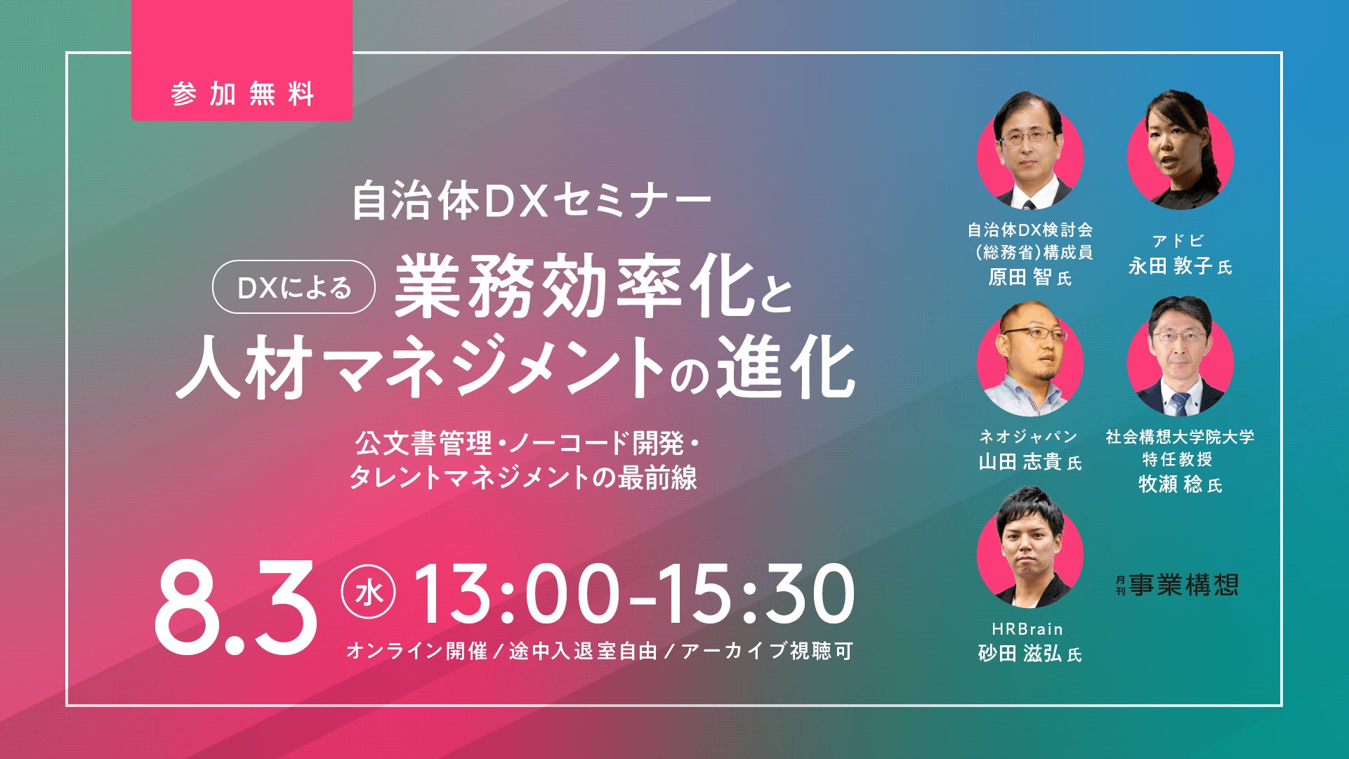 【自治体DXセミナー】「DXによる業務効率化と人材マネジメントの進化」を8月3日(水)オンライン開催