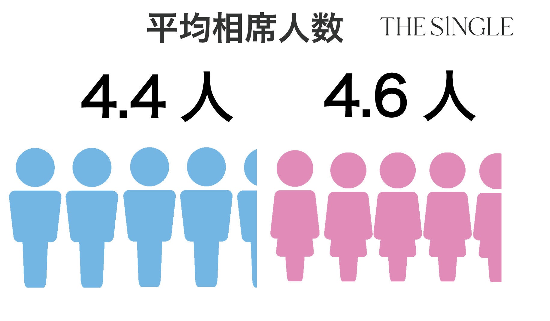 2024年5月のTHE SINGLEの平均相席人数は男性は4.4人、女性4.6人となりました。