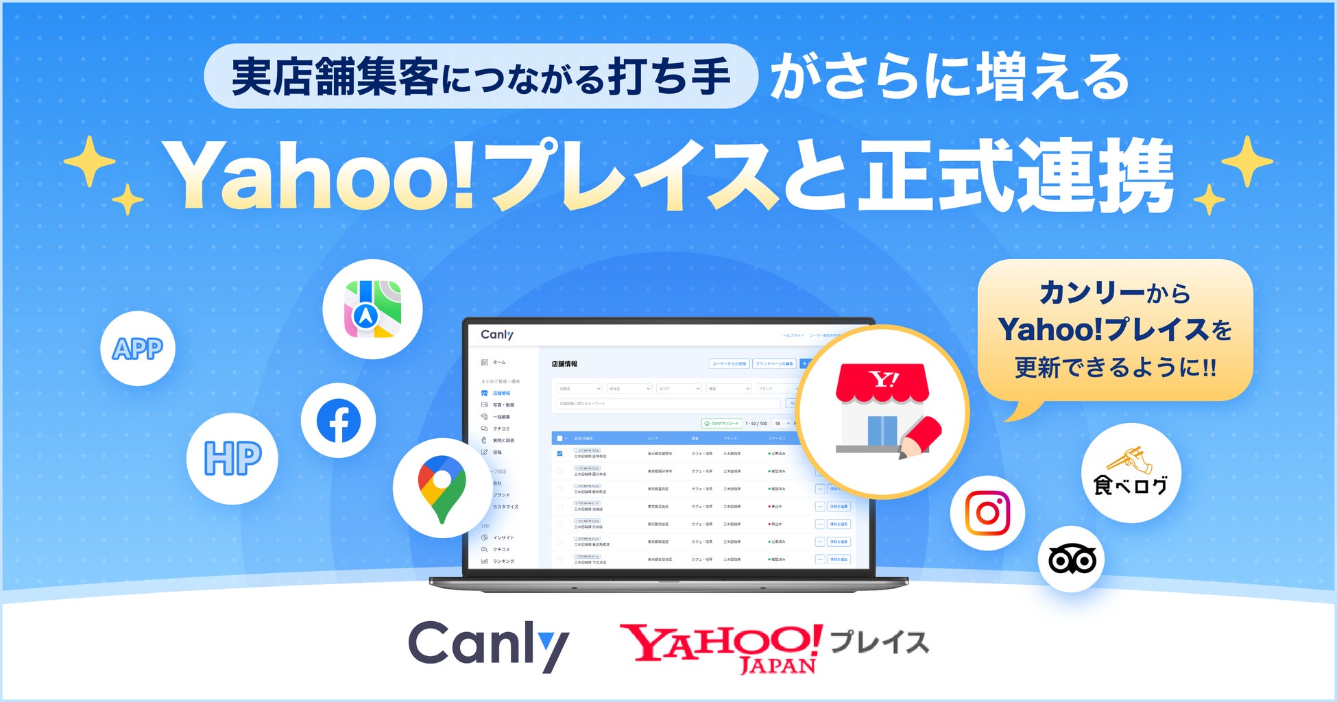 店舗集客媒体を一元管理するSaaS「カンリー」が「Yahoo!プレイス」とAPI連携。店舗アカウント作成を無料で支援するキャンペーンも実施。