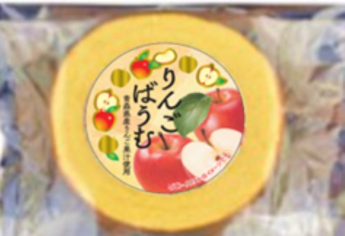 商品特徴:国産りんご果汁を使用したしっとり食感のバウムクーヘン。